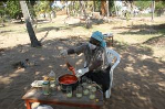 Agriservi lives in a tented camp that moves on a 2-week basis between the 3 areas. We live between the people themselves and go out to the different workplaces each day. At the moment we are helping to de-bush and use mainly hand labor and 2 chain saws and the Agriservi vehicle. We also help with training, setup of plant programs and efforts to organize product marketing.